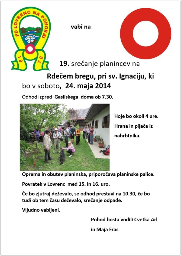 19. srečanje planincev pri sv. Ignaciju na Rdečem bregu.