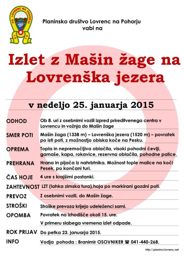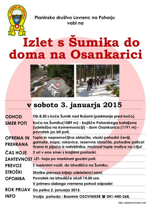 INFO: Vodja pohoda Branimir OSOVNIKER 041-440-268.