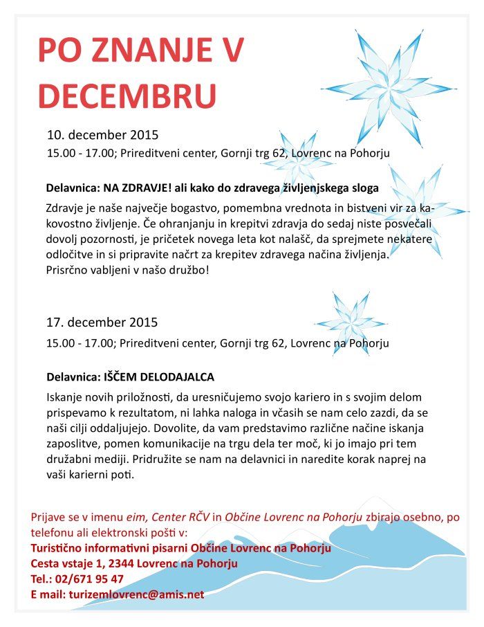 Kdaj: 17. 12., ob 15.00 - 17 12. 17.00