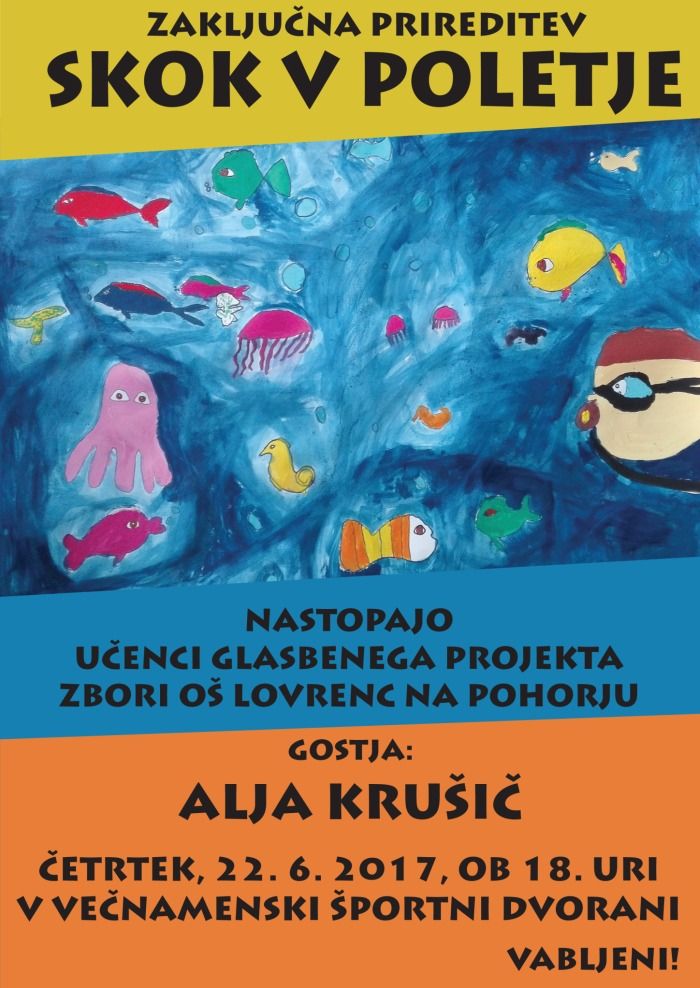 Prireditev ob zaključku šolskega leta s šolskimi zbori in Aljo Krušič.