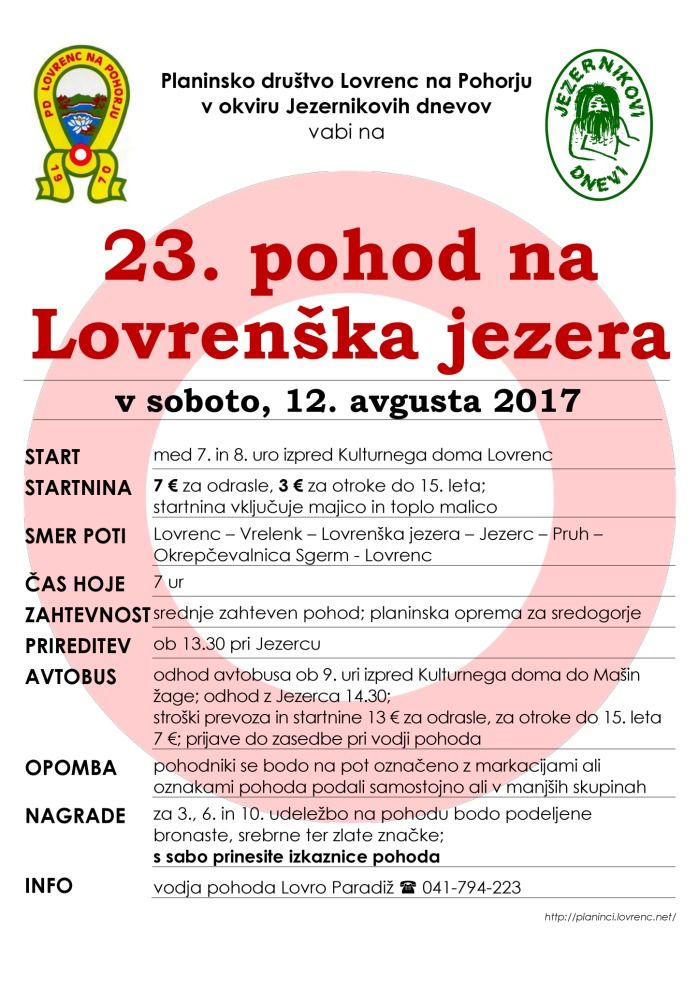 23. pohod na Lovrenška jezera v soboto, 12. avgusta 2017: