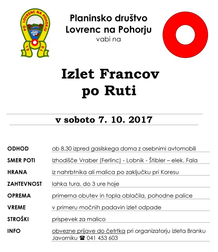 Tradicionalni jesenski izlet Francov, tokrat po Ruti.