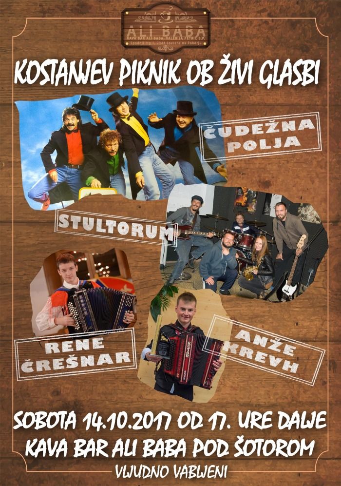 Vabljeni na kostanjev piknik ob živi glasbi v soboto 14.10.2017 od 17. ure dalje. Za glasbo bodo poskrbeli Čudežna polja, Stultorum, Rene Črešnar in Anže Krevh. Vljudno vabljeni !!!