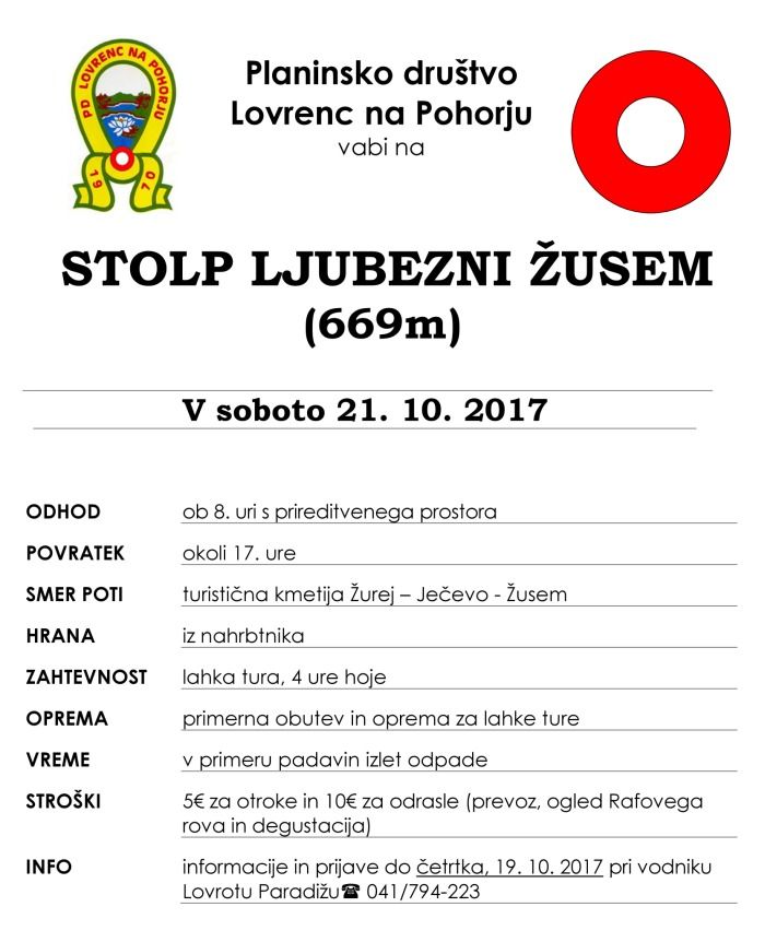 Prijave ob plačilu na telefon 041/903-056 (Vanja) najkasneje do 10.10.2017