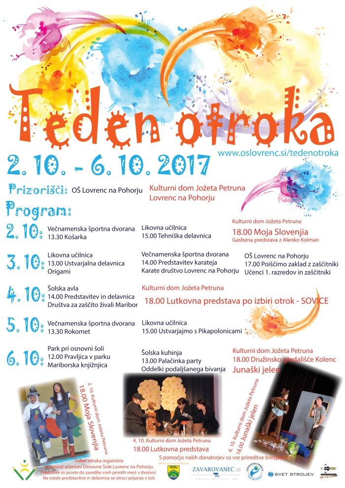 Športne in kulturne prireditve ter ustvarjalne delavnice ob tednu otroka.