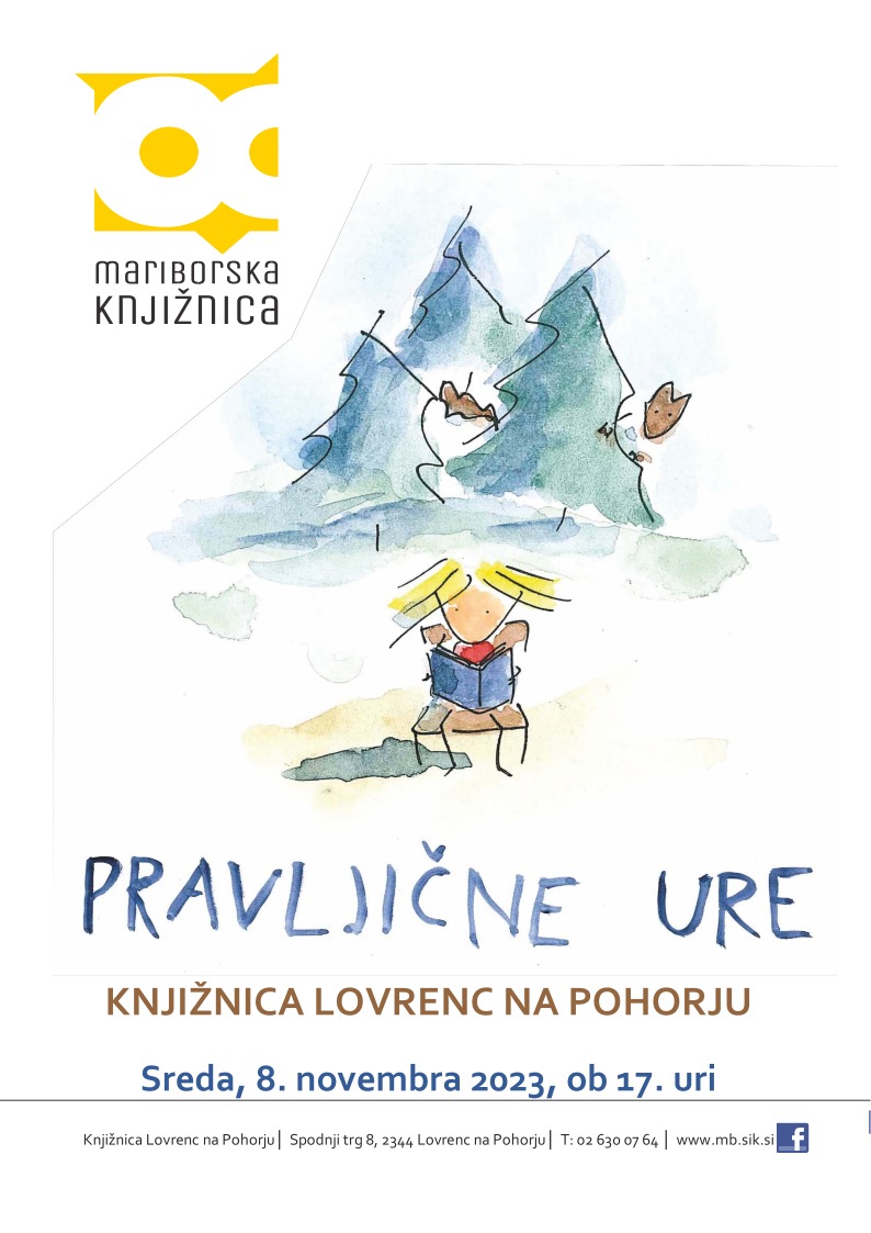 V sredo, 8. 11. 2023, vas ob 17.00 vabimo v prostore Knjižnice Lovrenc na Pohorju, kjer bo za vas izvedena pravljična ura.