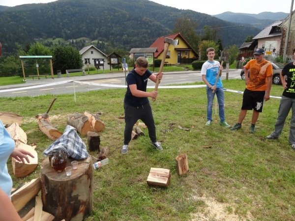 Da ohranimo tradicijo in znanje prenesemo na mladi rod smo izvedli prireditev, na kateri smo prikazali kako so se cepala drva nekoč in kako se danes.