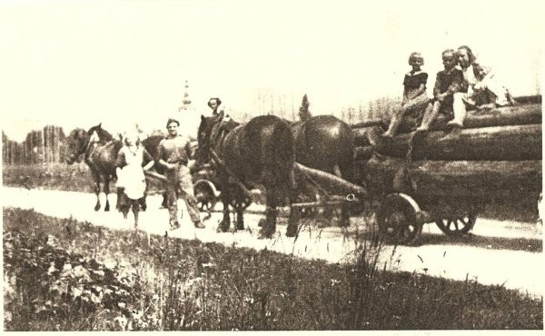 Podobno kot g. Štefan z voli, je g. Lubo spravljal hlode do žage s konji in to kar polnih 30 let.