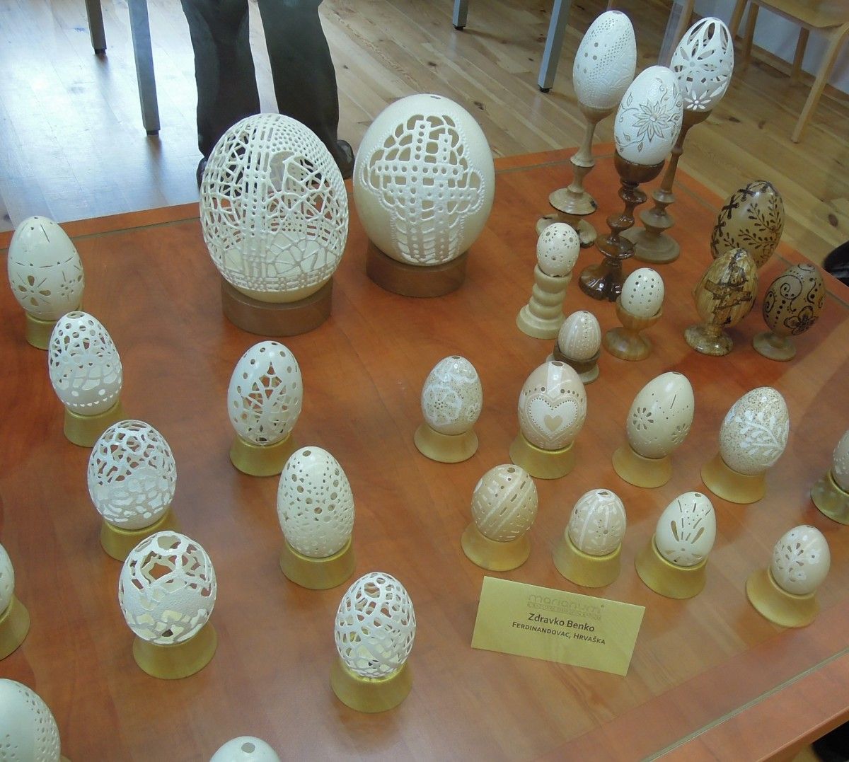Boštjan nam je ob kavici in rogljičkih na avtobusu razodel načrt: najprej v Marijanišče v Veržej, tam zajtrk, pridruži se nam g. Mirko Rakovnik, poznavalec poti po jeruzalemskih goricah, nato pohod do Jeruzalema, vrnitev v Veržej na kosilo, ogled razstave pirhov in bander, potem pa nazaj.