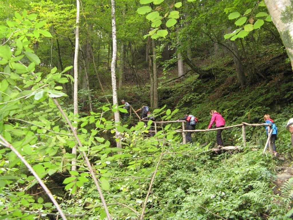 S kombijem smo se skozi Slovensko Bistrico zapeljali do vstopa v Bistriški vintgar. Po zložni poti ob potoku Bistrica smo se povzpeli mimo naravnih in zgodovinskih zanimivosti, nabrali nekaj gob in veliko klepetali. Po izstopu iz vintgarja pri Močniku nismo zavili proti Trem kraljem, kot na podobnem izletu pred dobrim desetljetjem, ampak smo se obrnili v nasprotno smer proti vzhodu ter po skupaj treh urah čiste hoje prispeli do Šmartna na Pohorju.