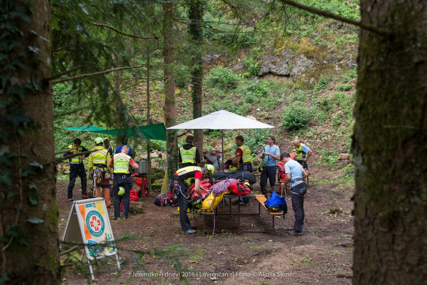 Gorska reševalna služba Maribor je z reševalnimi skupinami iz Maribora, Radelj in Slovenj Gradca v opuščenem puščavskem kamnolomu, ki ga že od pomladi čisti in ureja Branimir Osovniker ob pomoči planincev in alpinistov, izvedla prikaz reševanja. Najprej so postavili vrvno ograjo po kateri so se reševalci povzpeli na vrh kamnoloma, nato so prikazali reševanje poškodovanega plezalca iz stene ter spust ("abzajl") čez steno. Pripravili so tudi žičnico po katerih so spustili poškodovanega v nosilih in ob koncu še nekaj otrok.