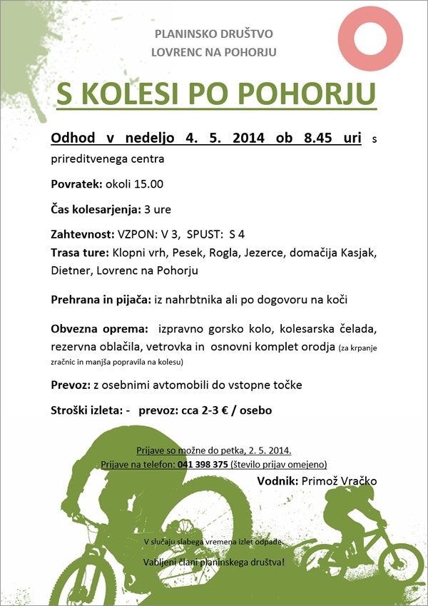Informacije in prijave: pri vodniku Boštjanu Germiču 041-794-240
