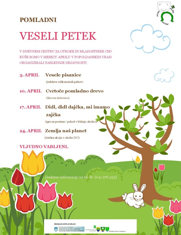 V dnevnem centru za otroke in mladostnike bodo aprila ob petkih organizirali popoldanske dejavnosti namenjene uporabnikom dnevnega centra CSD Ruše in njihovim prijateljem.