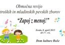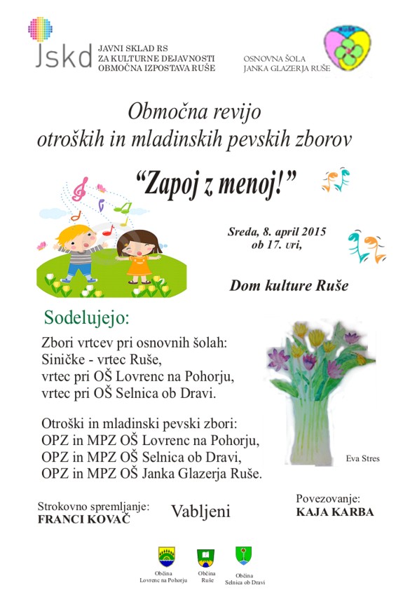 Vsakoletna revija otroških in mladinskih pevskih zborov v organizaciji JSKD OI Ruše, bo letos potekala v Domu kulture Ruše, v sredo, 8. aprila 2015, ob 17 uri.