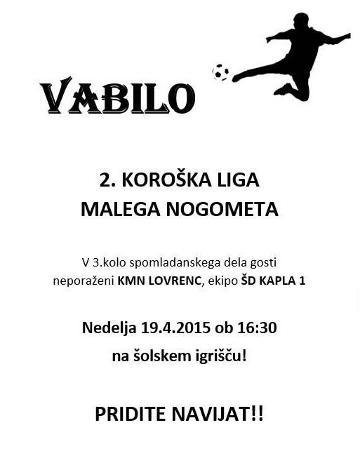 Neporaženi KMN Lovrenc gosti ŠD Kapla 1 na 3. kolu spomladanskega dela 2. koroške lige.