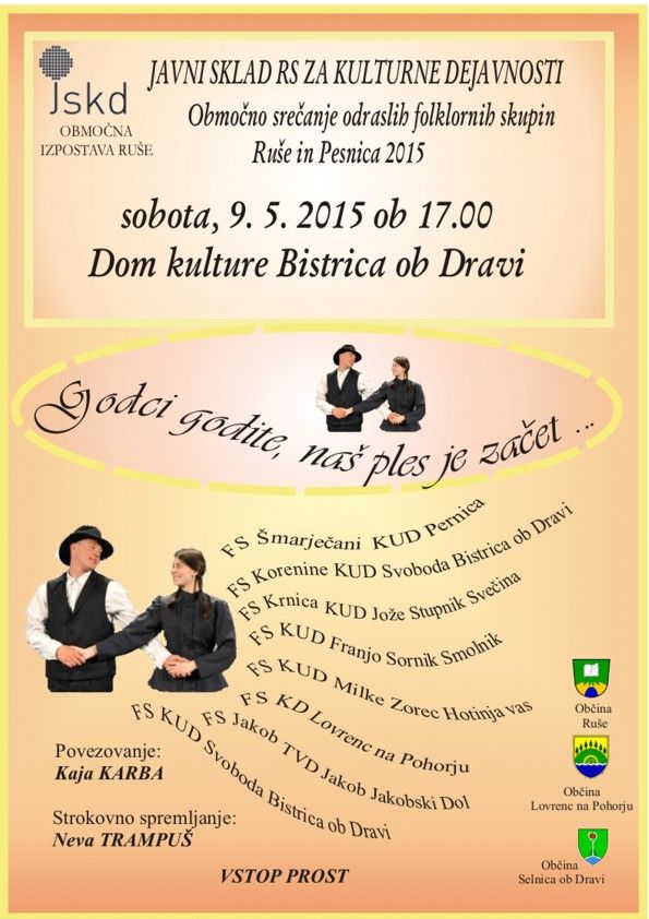 V organizaciji JSKD OI Ruše se bo odvijalo Območno srečanje odraslih folklornih skupin iz izpostav JSKD Pesnica in Ruše,