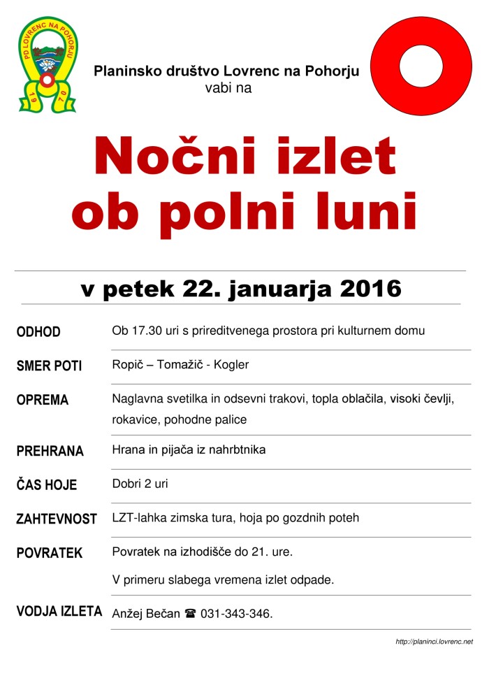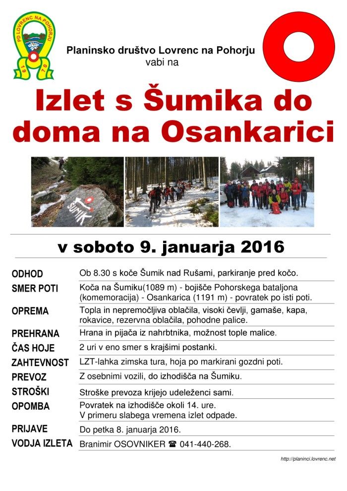 ODHOD: v soboto 9. januarja 2016 ob 8.30 s koče Šumik nad Rušami, parkiranje pred kočo.