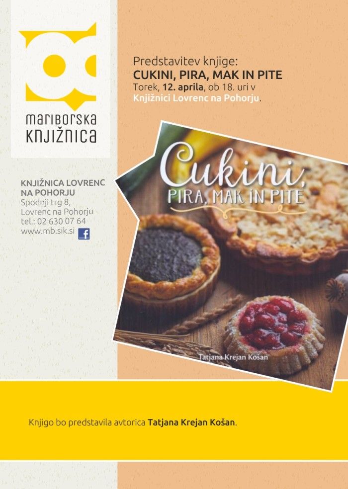 Predstavitev knjige "Cukini, pira, mak in pite" z avtorico Tatjano Krejan Košan.