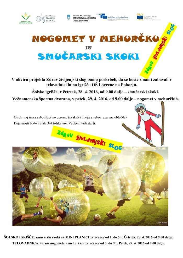 - večnamenska športna dvorana, v petek, 29. 4. 2016, od 9.00 dalje – nogomet v mehurčkih.