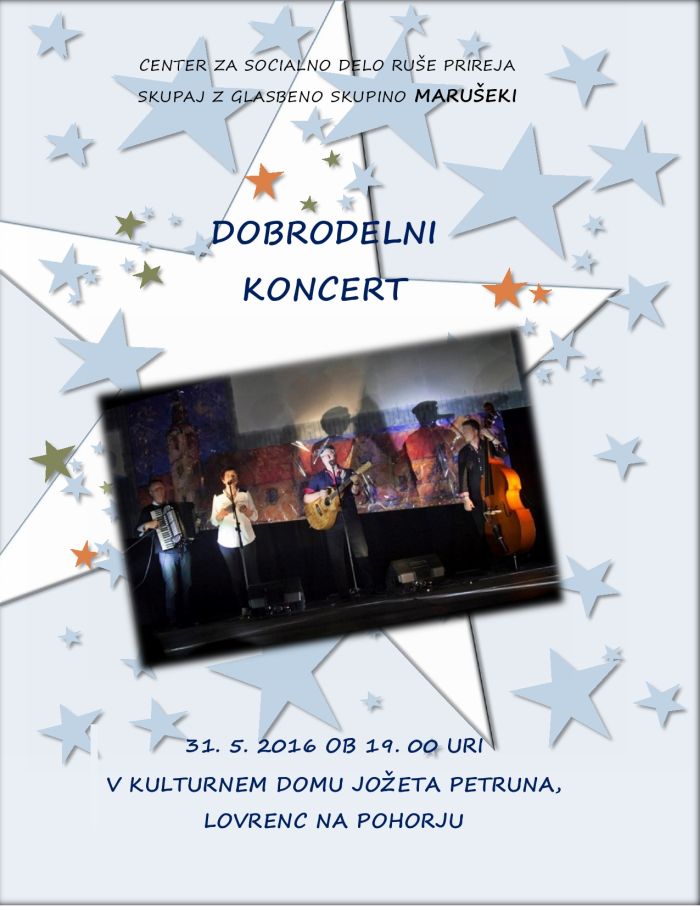 Dobrodelni koncert Centra za socialno delo Ruše z glasbeno skupino Marušeki.