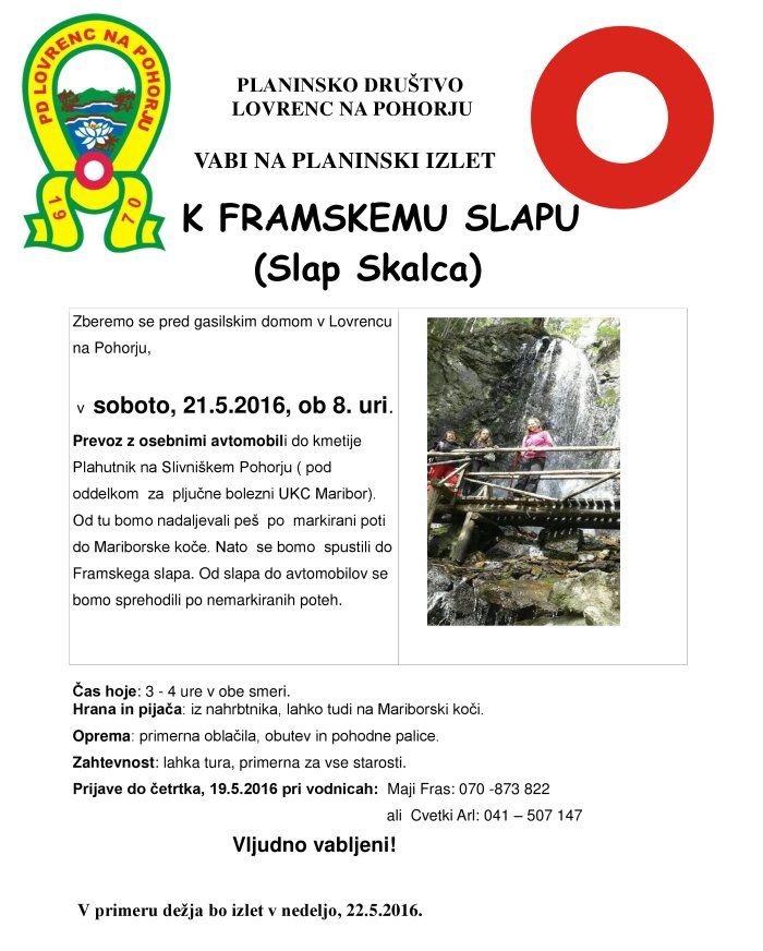 Planinski izlet od kmetije Plahutnik na Slivniškem Pohorju mimo mariborske koče Mariborske koče do Framskega slapa.