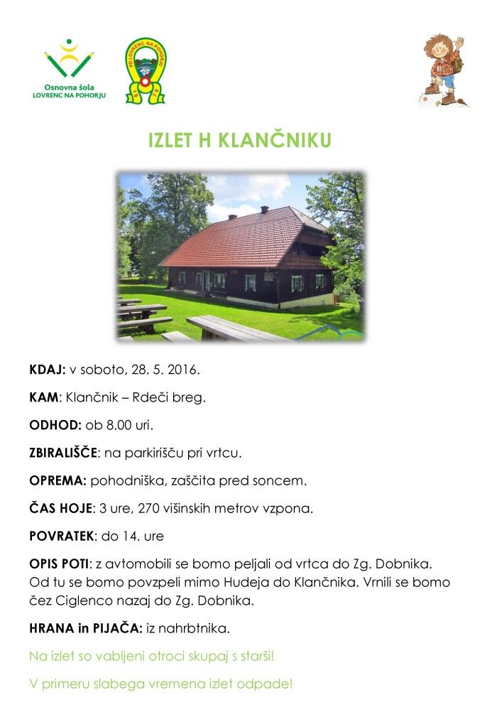 Planinski izlet h Klančniku na Rdečem bregu za vrtečane in šolarje prve triade.