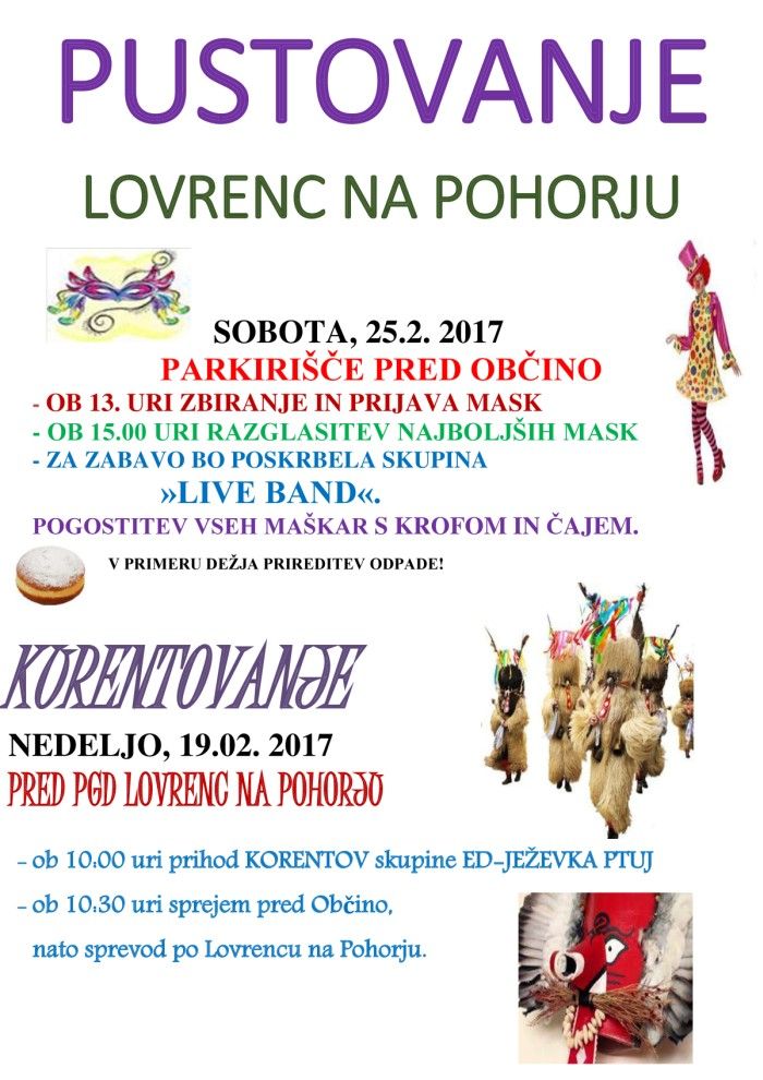 Osnovna šola Lovrenc vabi na ogled pustne povorke v torek opoldan.