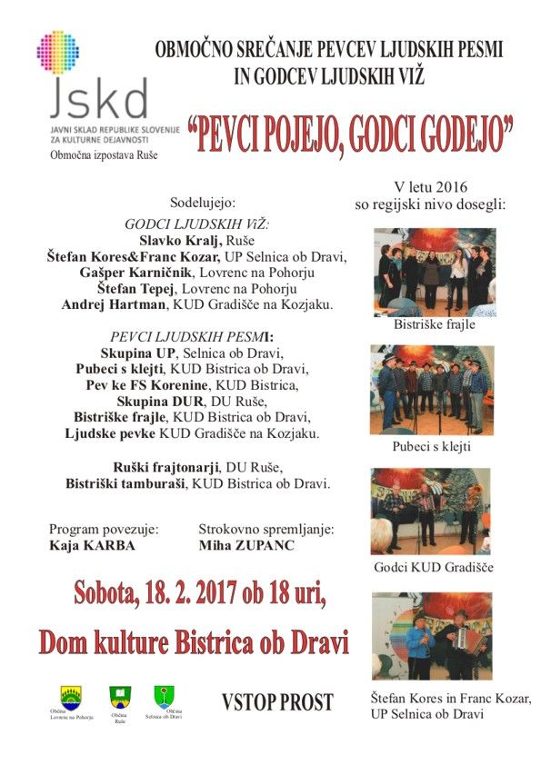 v soboto, 18.2.2017 ob 18 uri v Domu kulture Bistrica ob Dravi.