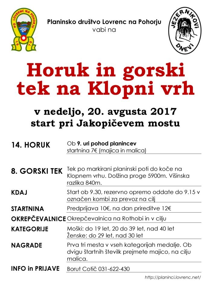 14. HORUK: Ob 9. uri pohod planincev startnina 7€ (majica in malica)