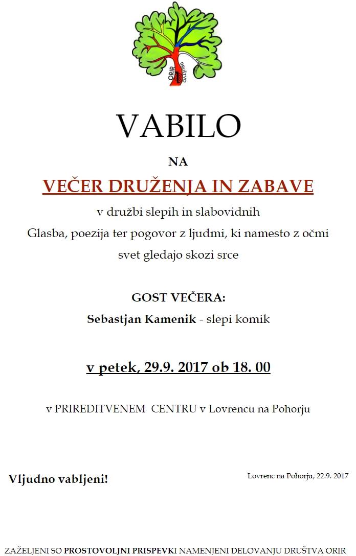Večer druženja in zabave v družbi slepih in slabovidnih.