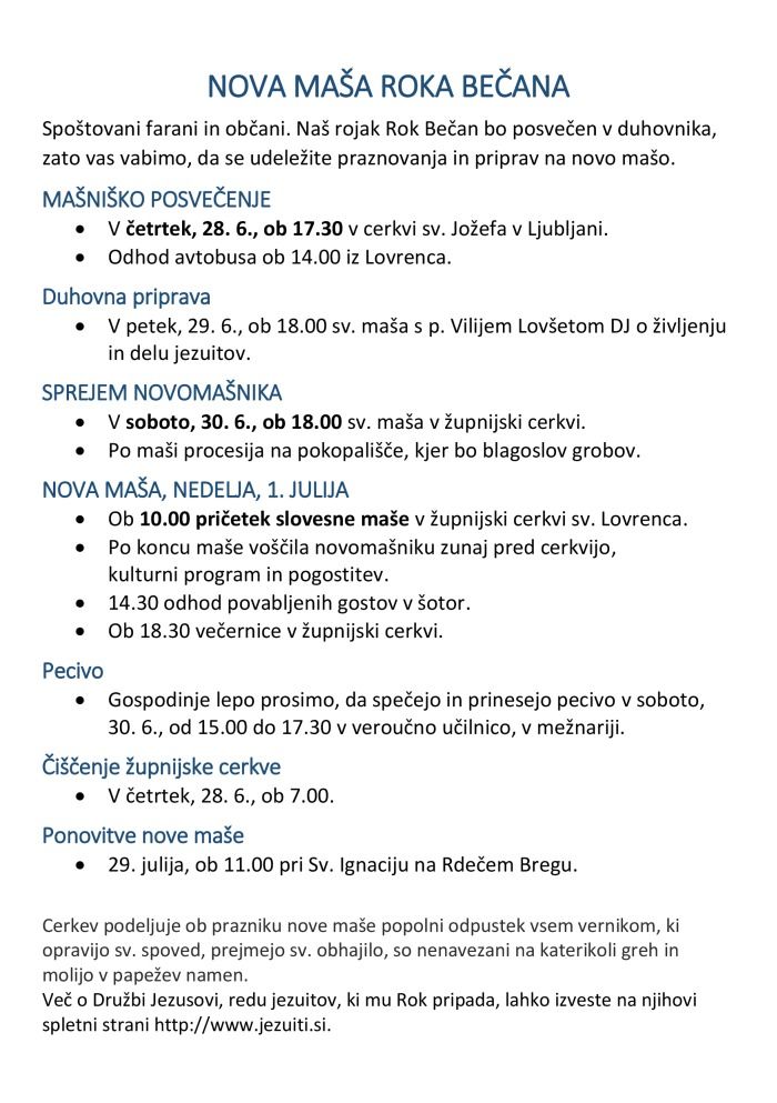 Dogodki ob posvetitvi Roka Bečana v duhovnika.