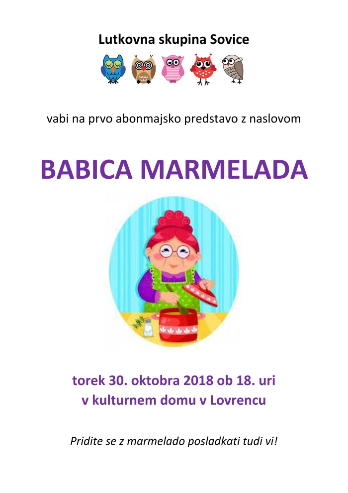 Prva abonmajska lutkovna predstava o babici, ki v gozdu živalim kuha marmelade.