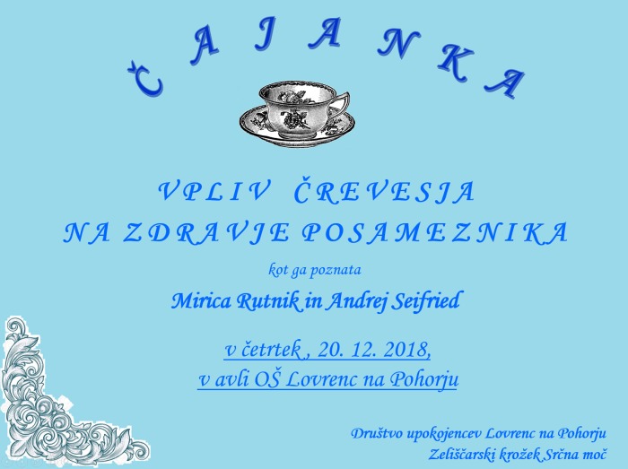 Na čajanki bosta Mirica Rutnik in njen brat Andrej Seifried govorila o vplivu črevesja na zdravje posameznika.