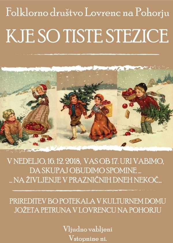 Otroška folklorna skupina Jezernik iz Lovrenca na Pohorju vabi, da se nam pridružite in skupaj z nami podoživite ali spoznate priprave na praznične dni otrok nekoč...