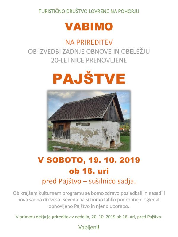 V petek, 25. oktobra 2019, ob 18. uri, v prireditvenem centru Lovrenc na Pohorju.