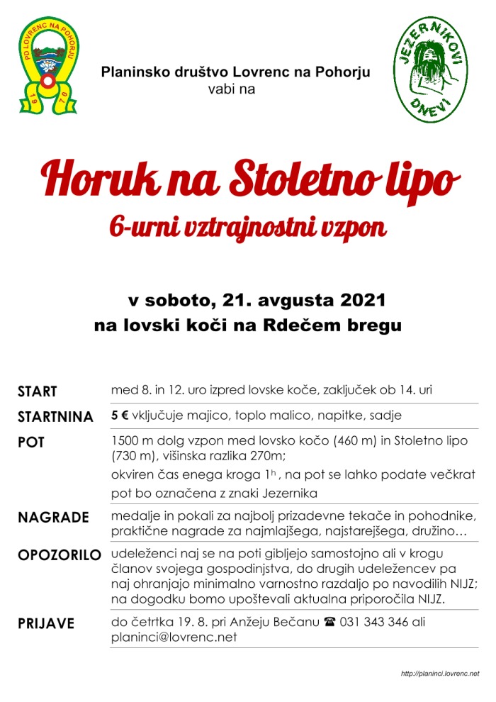 6-urni vztrajnostni vzpon z lovske koče na Rdečem bregu na Stoletno lipo