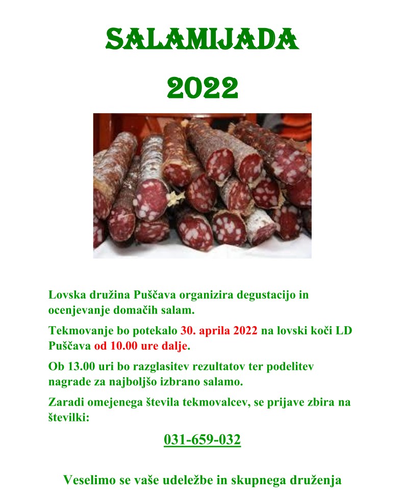 Lovska družina Puščava organizira degustacijo in ocenjevanje domačih salam.