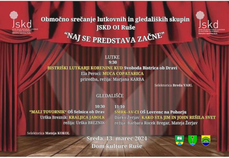 bo potekalo v sredo, 13. 3. 2024 dopoldan v Domu kulture Ruše.