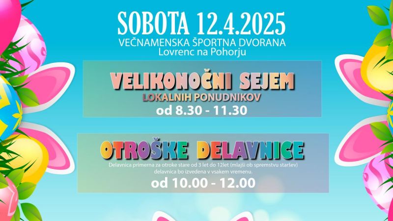 Vabimo vas na Velikonočni sejem lokalnih ponudnikov in otroške delavnice, kjer se bodo otroci pomerili v različnih igrah, ustvarjali ter spoznali živali na travniku.