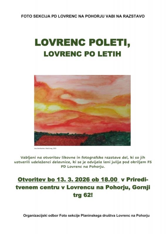 Otvoritev likovne razstave Lovrenc poleti, Lovrenc po letih z deli, ki so jih ustvarili udeleženci lanskoletne poletne likovne delavnice.